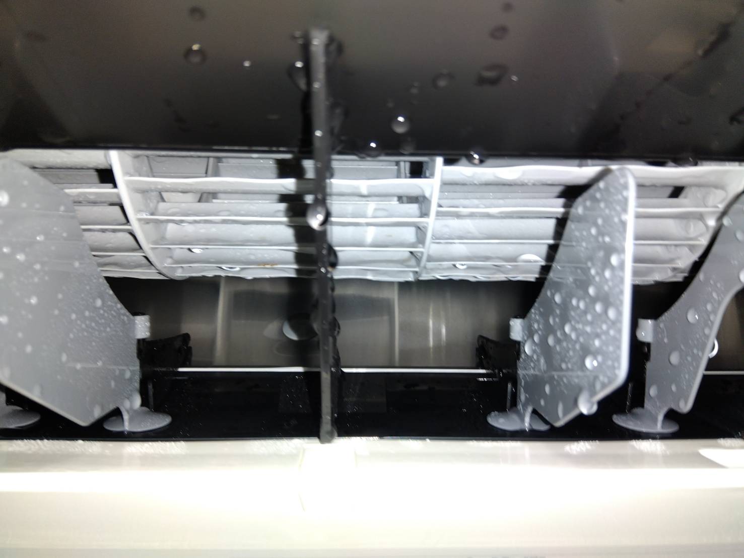 今回、意を決して専門の業者の方にのクリーニングを依頼したところエアコンを分解して掃除をするとのこと。部品も丁寧に扱い、青い布による養生もキチンとされました。作業の様子を見て言葉を失いました。高圧の洗浄機から吐き出される水は、一瞬で墨汁のような真っ黒な液体に変わり、バケツに溜まっていくのです。「これを毎日家族で吸い込んでいたのか」と想像するとゾッとしました。
